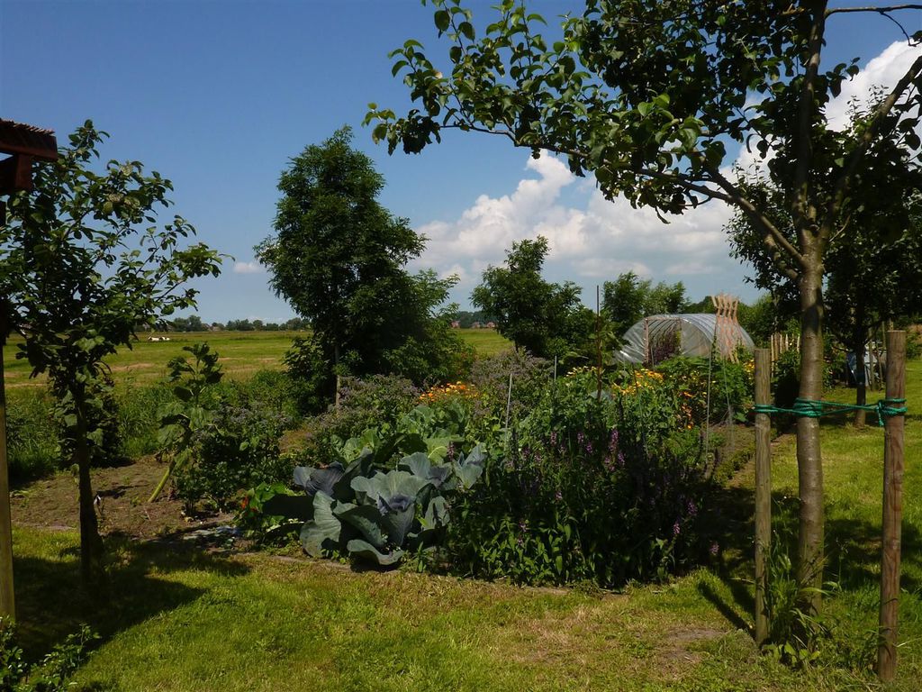Blumen, Obstbäume, Gemüstebeete, Feuchtbiotop, Wildkräuterwiese und verschiedene Sitzgelegenheiten mit Blick über angrenzenden Wiesen zeichnen den Garten rund um die Warft aus. In den Beeten sorgen Fingerhut, Mohn, Storchschnabel und viele andere Stauden für ein wildes Durcheinander. Die Blüten machen nicht nur Lust aufs Schauen, sondern sind zum großen Teil auch zum Genießen Geeigenet. Bei einer Kräuterführung darf deshalb auch gerne gezupft und probiert werden.