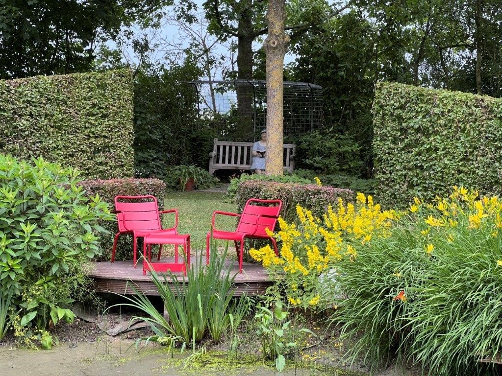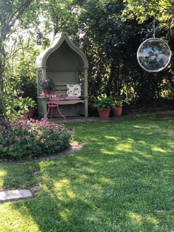 Verschiedene Sitzplätze laden dazu ein, den Garten aus unterschiedlichen Perspektiven auf sich wirken zu lassen und das im Jahr 2022 erbaute Glashaus bietet neue Möglichkeiten der Begegnung