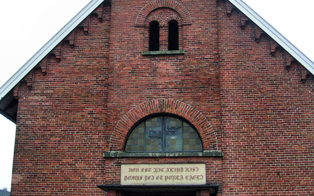 Die Kirche wurde 1842/43 vom Architekten H. Mecklenburg erbaut. Der kleine Glockenturm mit seiner Bronzeglocke von 1842 erhebt sich über dem 1959 umgebauten Eingang.