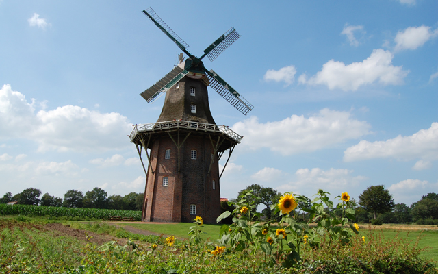 Die Tour 4 führt Sie nach Timmel. Sie kommen an zahlreichen Mühlen vorbei, sehen das Schloss Evenburg in Leer und kommen auch an der Brauerrei "Ostfriesenbräu" in Bagband mit angeschlossener Gastronomie vorbei.